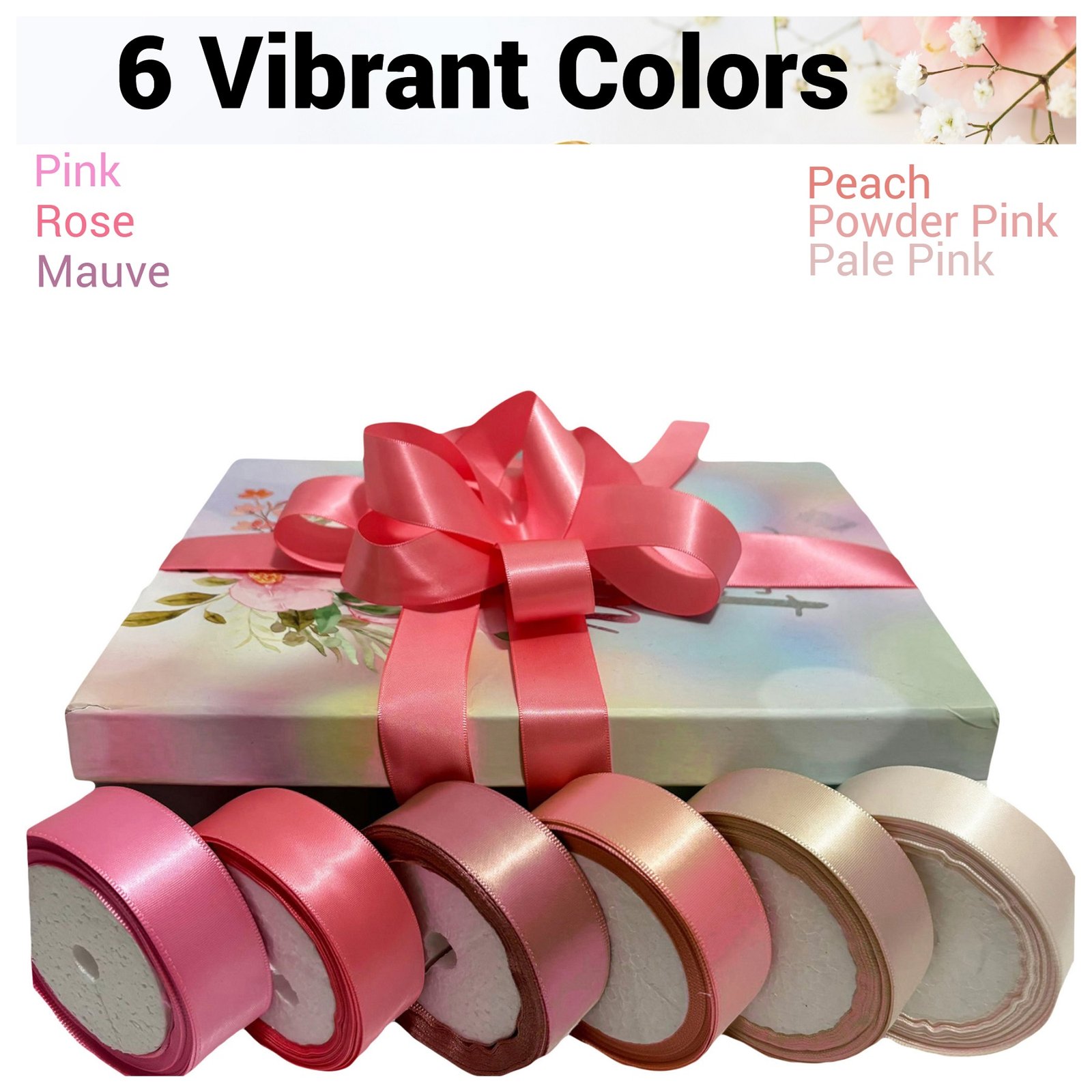 ✅ 6 COLORS SET: This set includes 6 rolls of different soft pastel tones of pink ribbon.