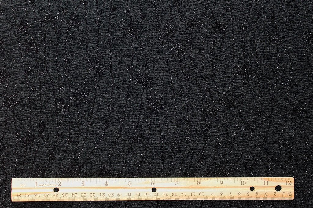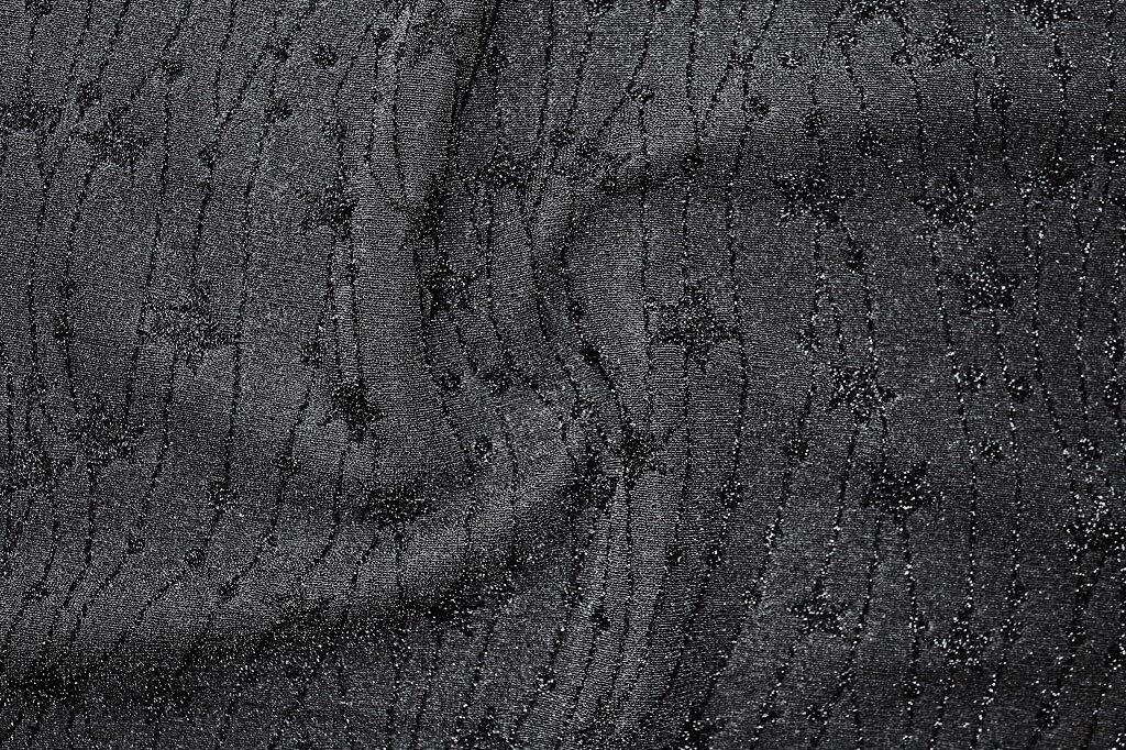 Jacquard Lurex Knit is a high-quality knit in a polyester-elastane mixture formed on a jacquard weave with a lurex design. Due to the fine content of lurex in the knitted fabric, the fabric has a moderately noble sparkling appearance. This fabric does not shed. It is suitable for making jackets, skirts, fancy dresses, or accessories. It can also be used as a decorative fabric.