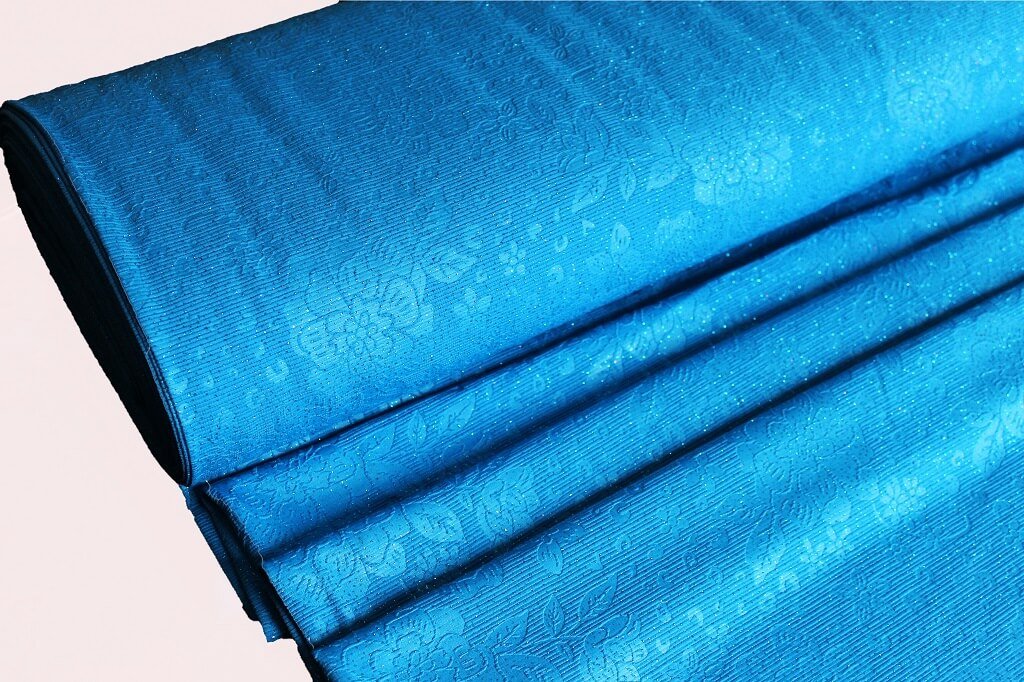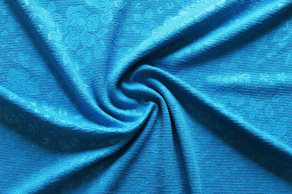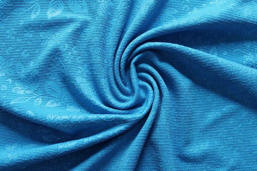 Knit Dobby Jacquard Embossed with Glitter is a high-quality woven knit with an embossed design and glitter content evenly spaced all over the material. The dobby fabric refers to a woven fabric that is produced on a specific dobby loom. This Knitted Dobby fabric has a textural effect such as raised stripes and embossing that gives the clothes an elegant look. The lurex content may shed slightly. This Dobby Knit can be used for dresses, skirts, jackets, purses, other outwear, and so many more! Dobby fabric is a fantastic choice if you’re looking for a creative sewing project!